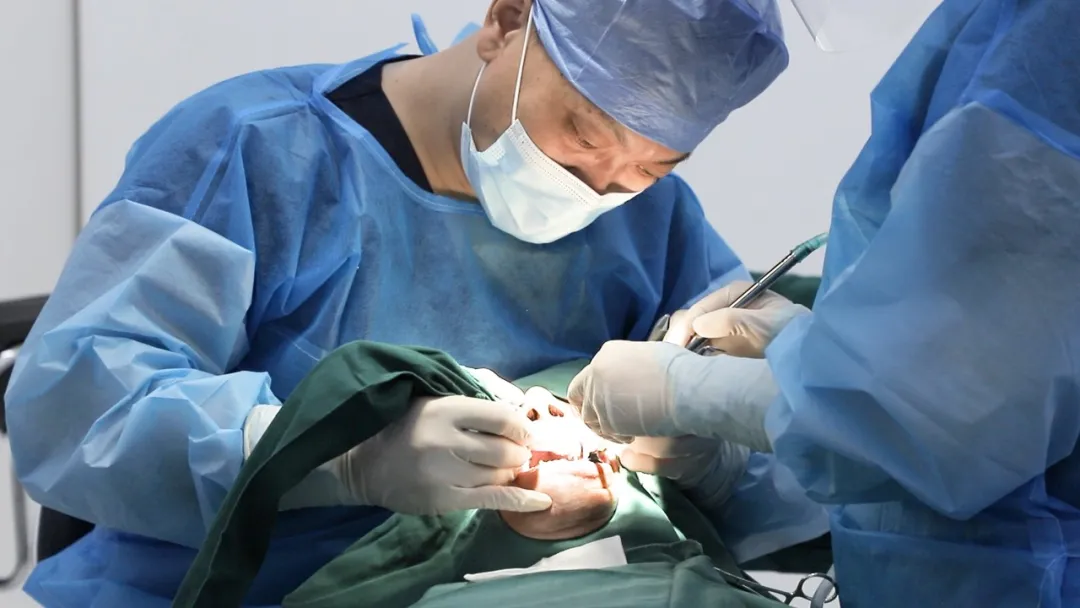 在拔完牙齿并且确定好自己的数字化种植方案之后,海德堡联合口腔疑难种植中心主任胡克林为周爷爷进行了德国数字化精准种植手术。