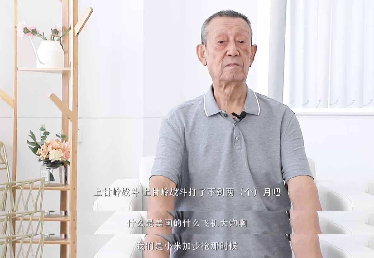“1952年的时候,我参加了上甘岭战役。“联合国军”6万多人,大炮300多门,坦克170多辆,出动飞机3000多架次……我们呢?小米加步枪。但最后我们还是赢了,我们守住了阵地!这场仗打了快两个月啊!”