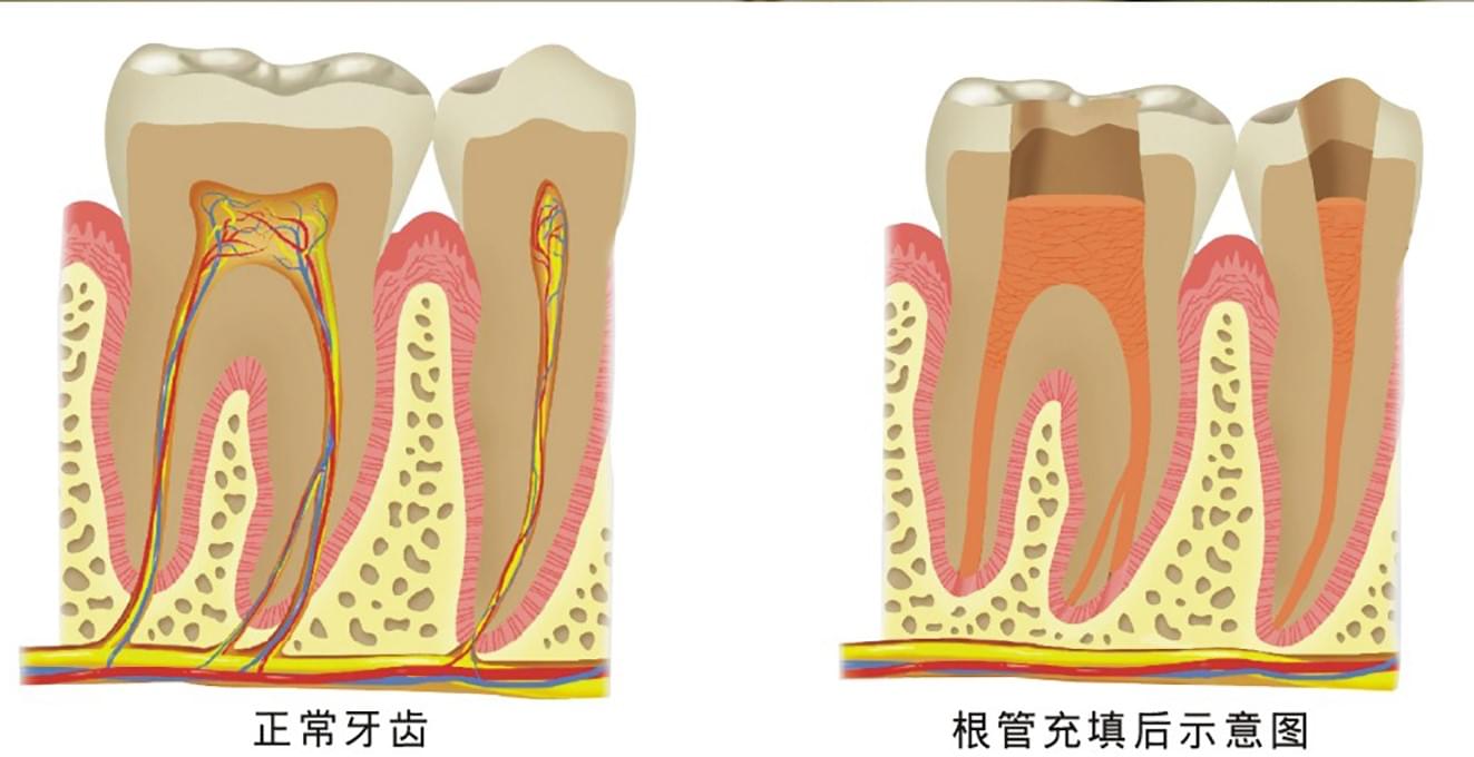 由于缺乏充分的侧支循环,牙髓一旦发炎,不能自行消除,必须摘除牙髓才能缓解症状,并且需要去除牙髓腔内的感染,再用生物相容性材料充填密封根管,杜绝再感染,临床上应用最广的方法是根管治疗术。通过及时有效的治疗,患牙一般都可以保存。但若治疗不及时,感染会进一步扩散,引起根尖周的炎症,甚至最终导致牙器官的丧失。