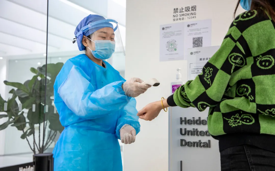 在进行所有口腔诊疗操作之前,海德堡联合口腔所有医护人员必须佩戴口罩,做好手消毒,并且穿戴好防护服,确保顾客就诊的全面安全。