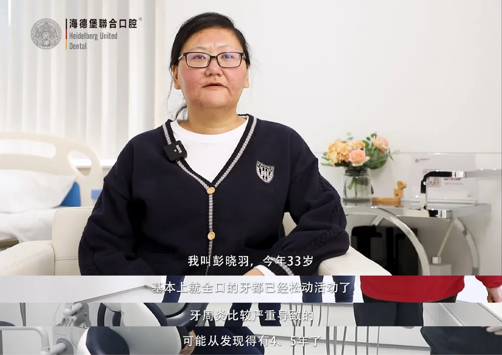 彭晓羽今年33岁,来到海德堡联合口腔接受雪松院长会诊的时候,医护人员们看到不符合于她年纪的牙齿状况,大家都心疼不已。