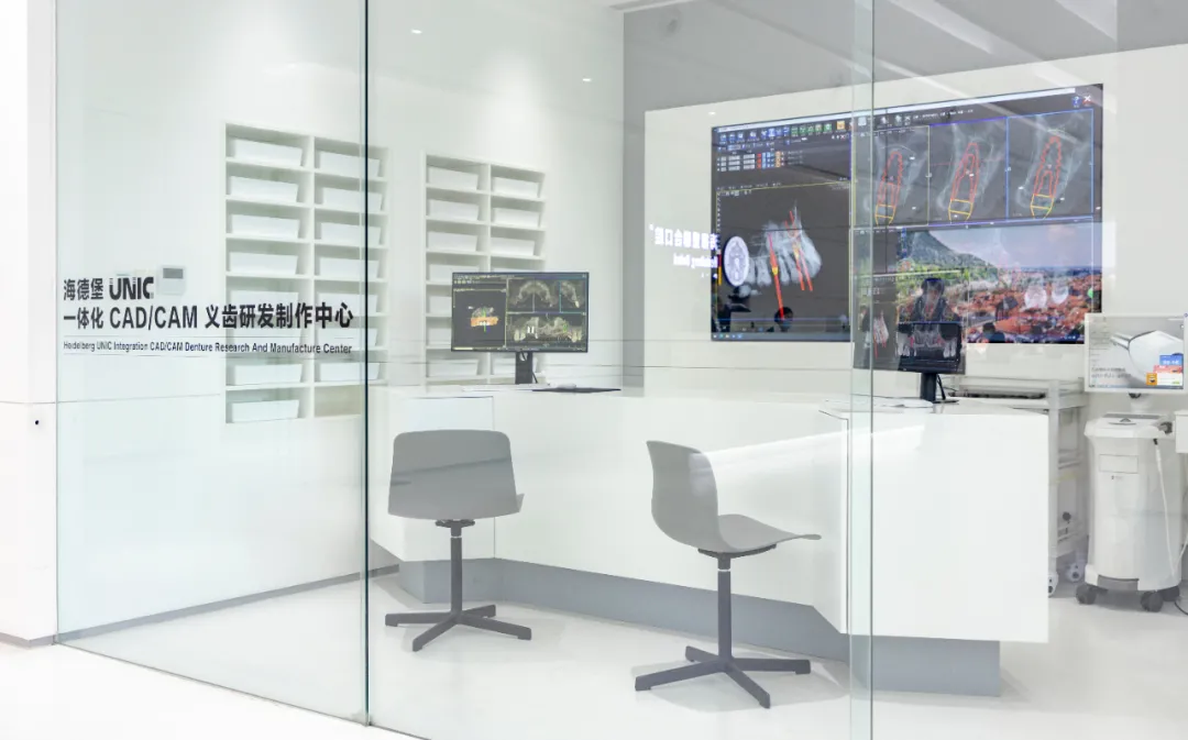 海德堡联合口腔院内精简的黑灰白色调,一个个透明的诊室,可视的数字化大屏,有序的流程、笑容亲切的医护,给叔叔留下了很深的印象。