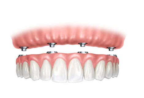 当满嘴牙齿缺失时,必须制作全口假牙, 传统假牙由于仅靠牙床粘膜软组织的支持,固定力量薄弱,不但假牙容易松却,咀嚼功能也不佳,仅能恢复正常功能的三四成而已。加上如果牙龈受力不当,牙槽骨将逐渐萎缩,假牙效果也越来越差。人工种植牙则无移动或咀嚼功能不好的情况,而且在植入部位的牙槽骨,种植牙对其形成功能性刺激,延缓了牙槽骨的吸收,故医学界有人称人工种植牙是人类第三副牙。