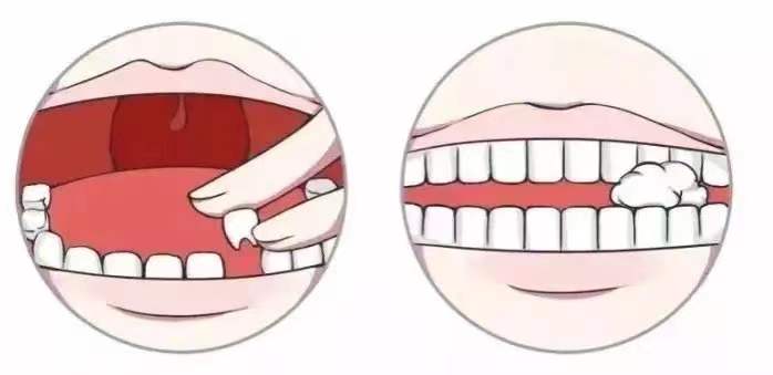 对于年纪小的孩子:可以用手指将牙齿轻轻推进牙龈缺口中;