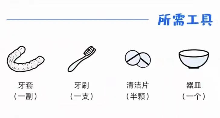 牙套跟牙齿一样,也需要清洁,白天摘下后用清水反复冲洗(常温水即可,不能使用太烫的水),但早上起床和晚上睡前,最好用牙刷360度刷干净(捏住清洗部位防止用力过大损坏牙套),可加少量牙膏、除菌泡腾片清洁,减少牙套的异味。