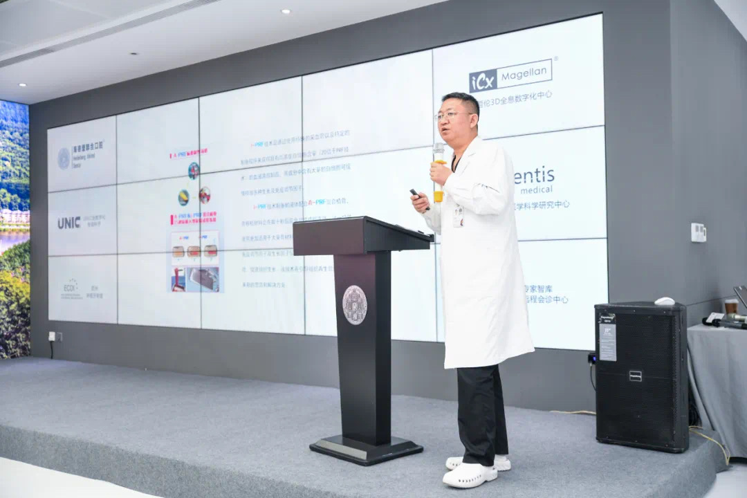 医疗技术无止境,海德堡联合口腔UNIC种植中心李志峰院长总结自己现阶段的研究成果,向大家分享了"CRF生长因子在种植临床上的应用"研究课题,这项研究为牙周病患者、糖尿病患者、吸烟患者等提供了即拔即种的理论支持。