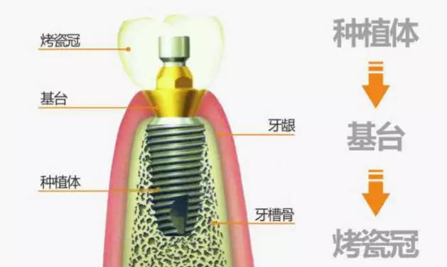 种植牙指的是一种以植入骨组织内的下部结构为基础来支持、固位上部牙修复体的缺牙修复方式。它包括下部的支持种植体(dental implant)和上部的牙修复体(dental prosthesis, implant-supported)两部分。它采用人工材料(如金属、陶瓷等)制成种植体(一般类似牙根形态),经手术方法植入组织内(通常是上下颌)并获得骨组织牢固的固位支持,通过特殊的装置和方式连接支持上部的牙修复体。种植牙可以获得与天然牙功能、结构以及美观效果十分相似的修复效果,已经成为越来越多缺牙患者的首选修复方式。