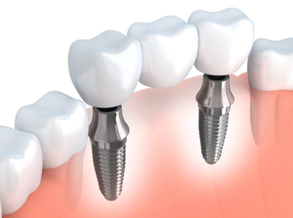 2、多颗牙齿缺失:植入多颗牙植体,当做支台柱,以便连结到真牙或其他牙植体,制作固定假牙。
