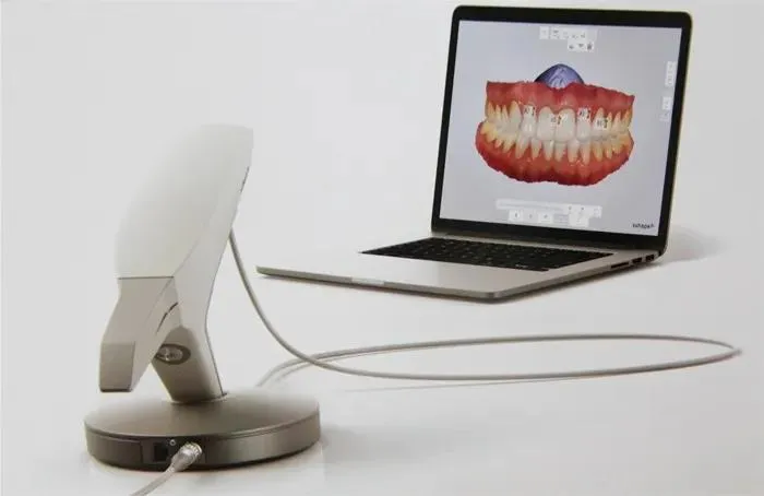 患者只需要静静站在设备前接受影像扫描2分钟左右,就能够迅速获取口内数据。