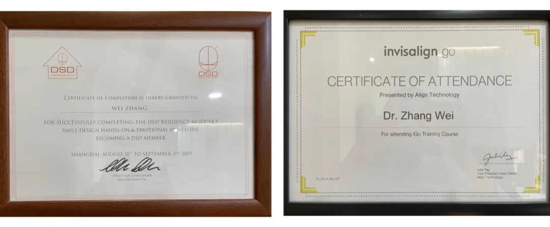 17年的临床经验,丰富的实践经验,海量病例积累以及美国Invisalign隐适美专业的培训,张巍医生获取了隐适美Invisalign 认证医师、隐适美Invisalign Go 认证医师和隐适美Invisalign Go 特邀讲师的资质。