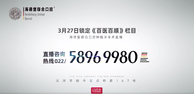 3月27日19:20,天津广播电视台《百医百顺》栏目携手海德堡联合口腔开启极简种植手术直播!