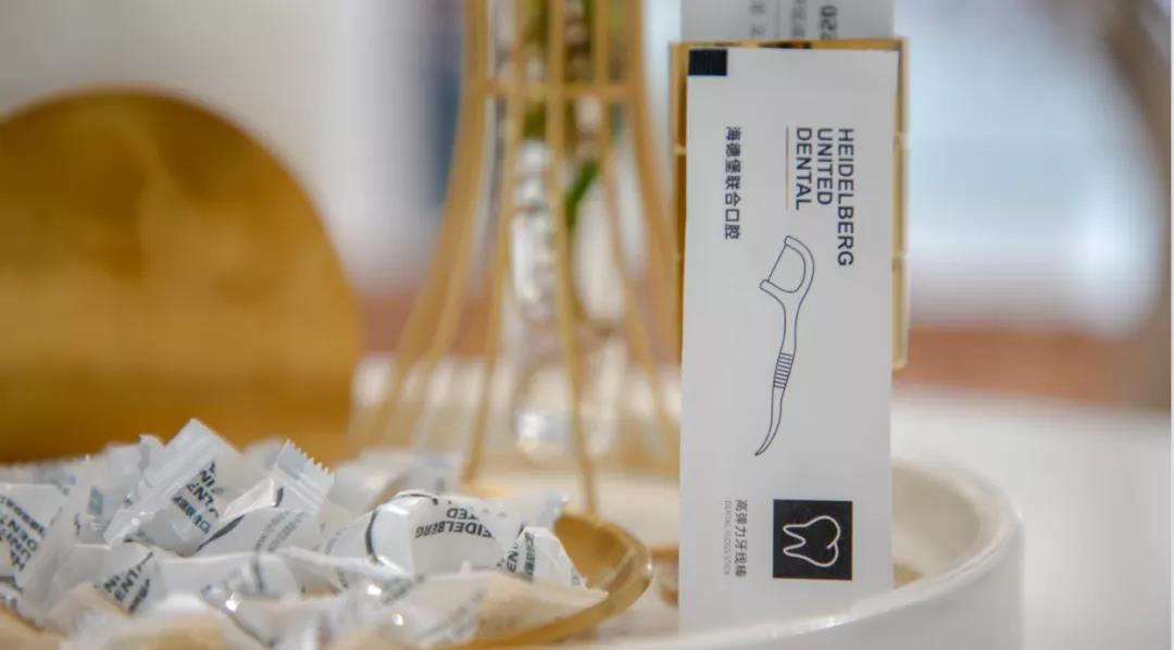 海德堡联合口腔为了向大家普及牙齿健康知识,帮助大家养成使用牙线的习惯,在院区内为患者准备了免费的牙线和薄荷糖,方便大家随时取用。
