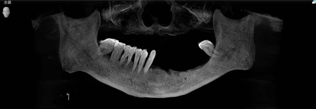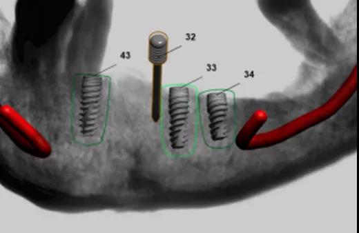 并且下颌左侧的后牙区骨质疏松,为他规划的种植区距离下槽牙神经很近。