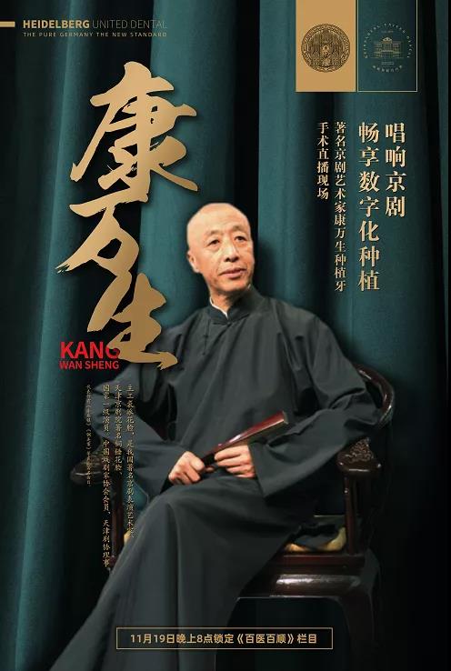 11月19日晚8点,锁定天津科教频道《百医百顺》栏目,现场直播海德堡为京剧家康万生种植牙