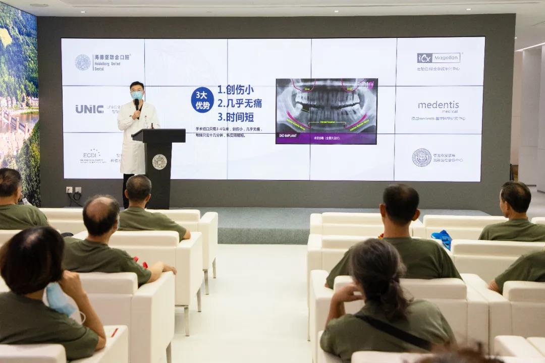 在今天的活动中,许多退役军人们体验到了先进的德国数字化诊疗设备,经过口腔专家的详细讲解后,直观地了解到自己的口腔健康状况,并且也在海德堡联合口腔种植中心崔雪冬主任的口腔健康课堂中学习到了平时容易忽略的口腔健康小知识。