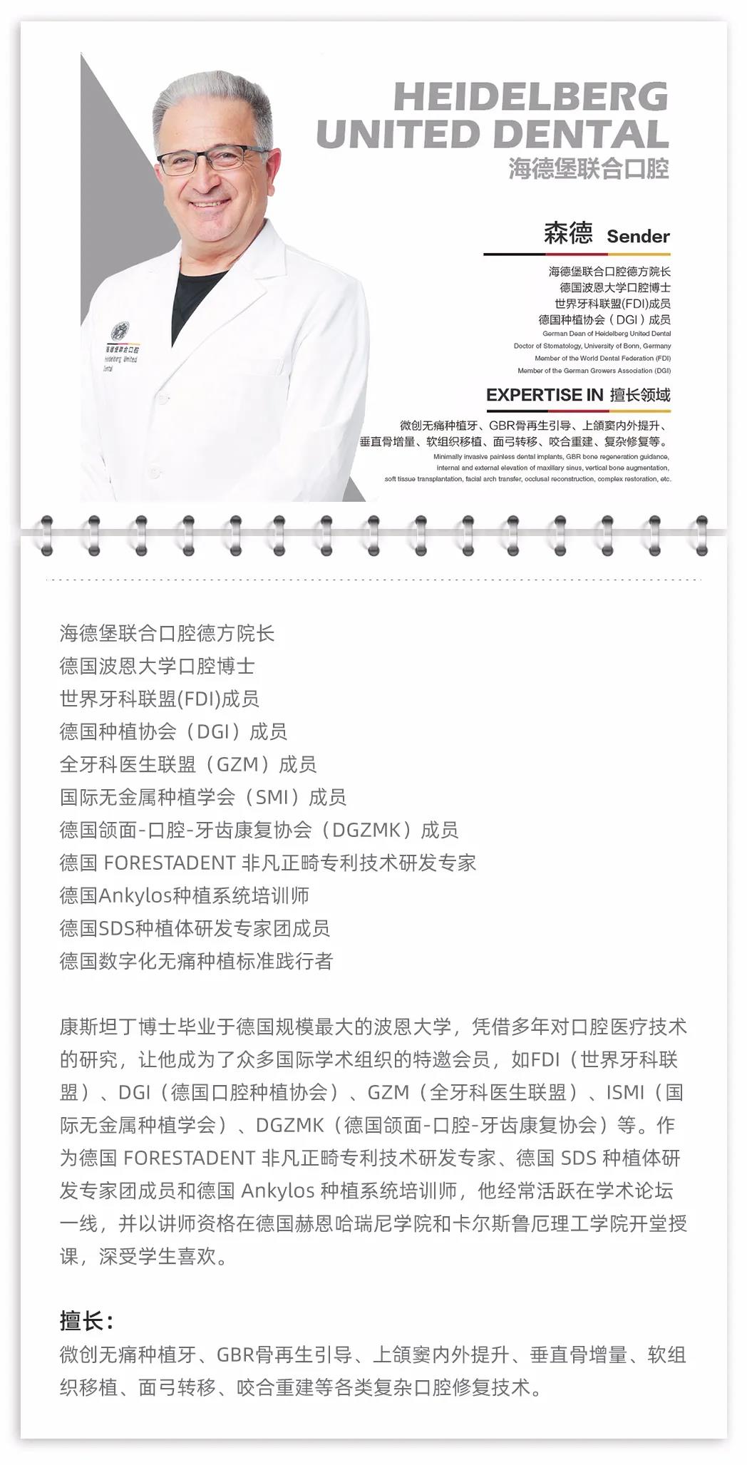 森德博士毕业于德国规模最大、世界一流学府、诞生过七位诺贝尔奖获得者的波恩大学,凭借多年对口腔医疗技术的研究,让他受邀加入各大权威口腔行业协会,口腔行业证书更是数不胜数。