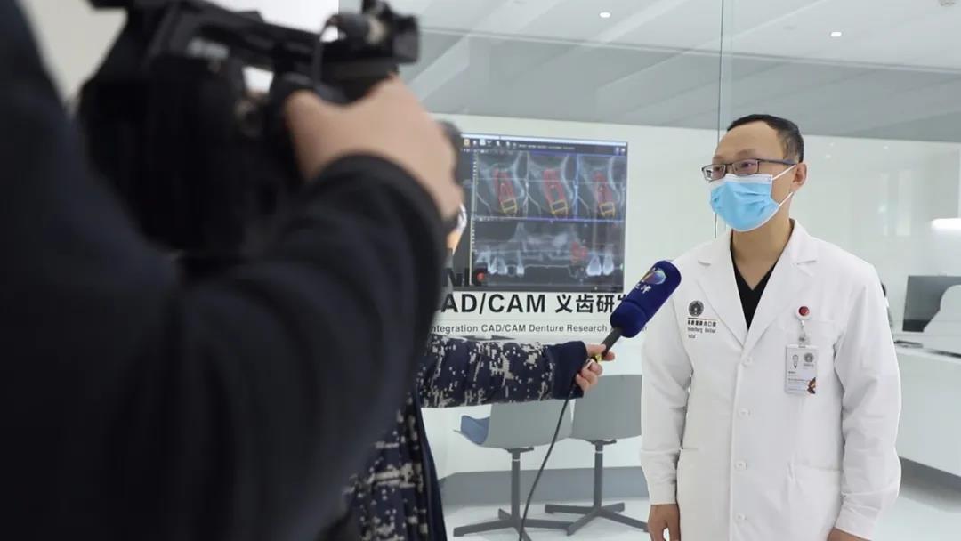 正因海德堡联合口腔德国数字化口腔医疗的品质,更是受到了天津广播电视台栏目组来到活动现场对数字化微创种植中心李雪松院长进行采访,对海德堡联合口腔本次活动的医保定点医院认证与极简种植牙新品进行报道。