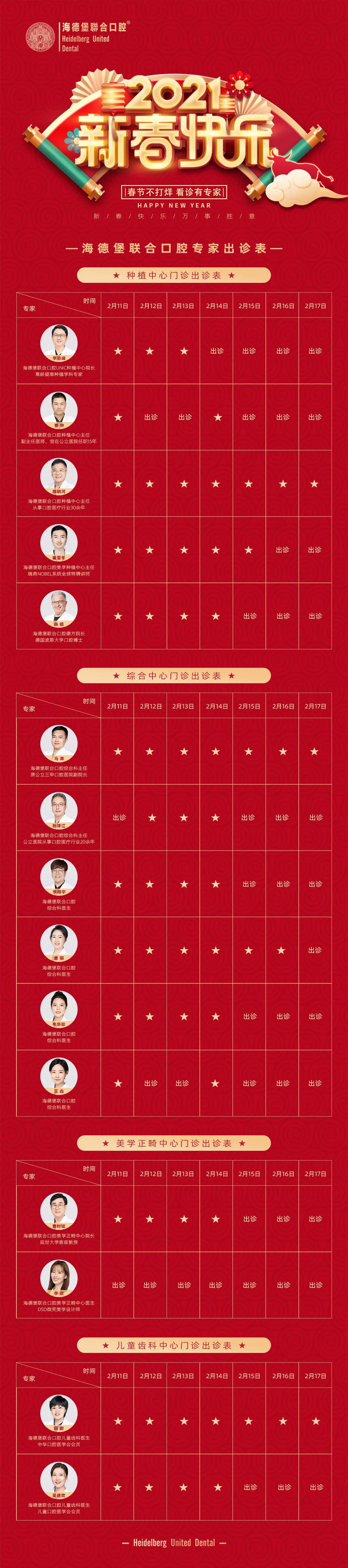 春节不打烊 | 海德堡联合口腔春节期间多位专家正常接诊!守护您的口腔健康