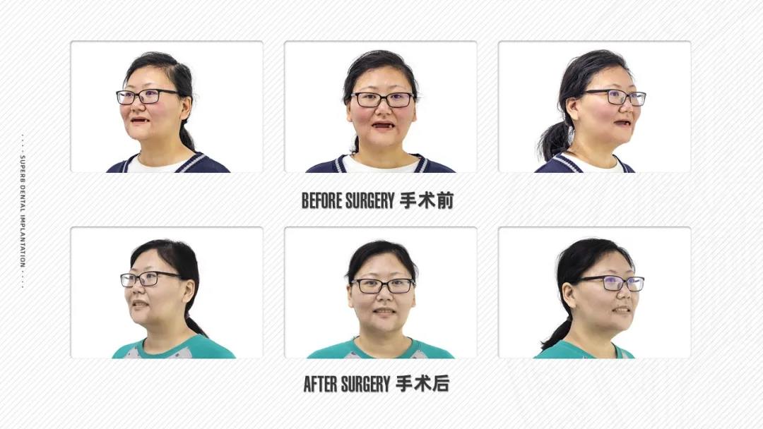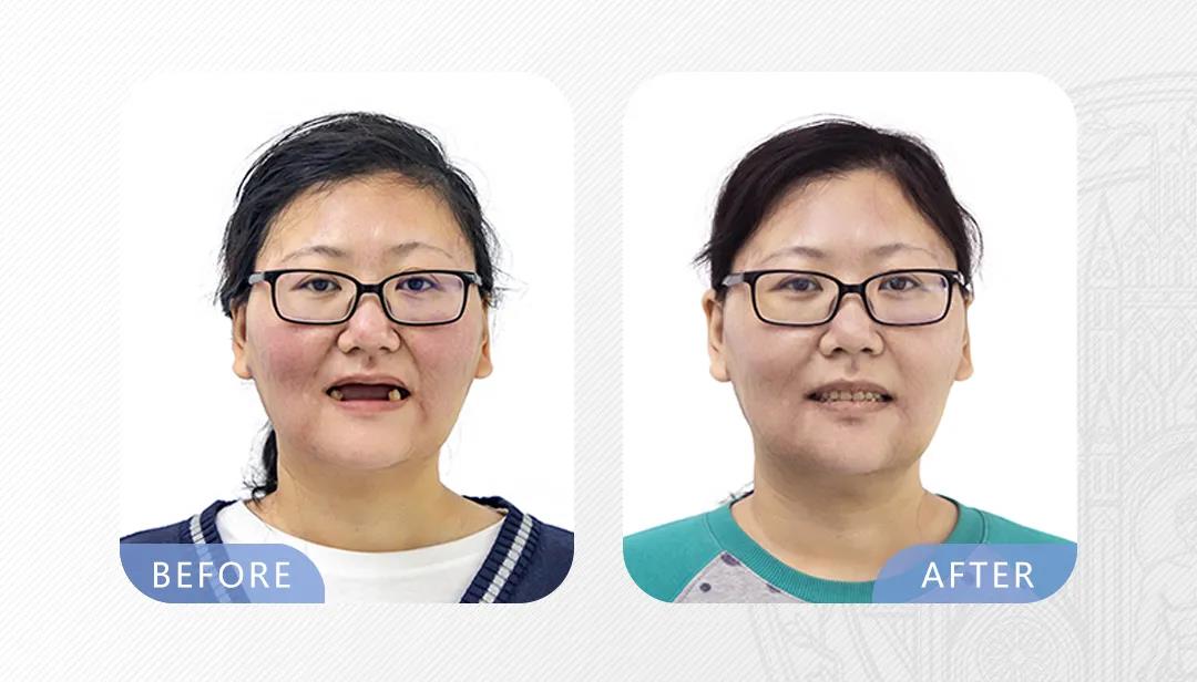 不仅如此,长期缺牙,还会导致偏侧咀嚼,久而久之容易变成大小脸。可以明显看出,种植前后的对比,整个人看起来都年轻了。
